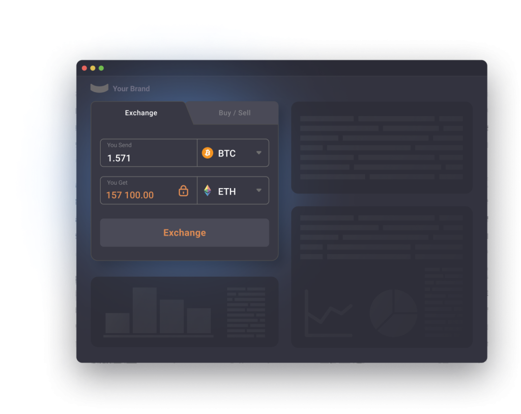 Fiat on- and off-ramp is available upon request. Onboard your customers into fiat to crypto exchange directly on your platform.